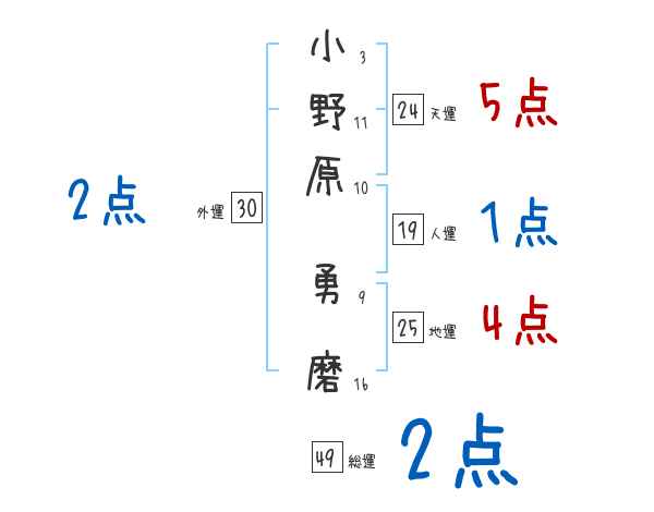 小野原勇磨さんの画数の鑑定結果