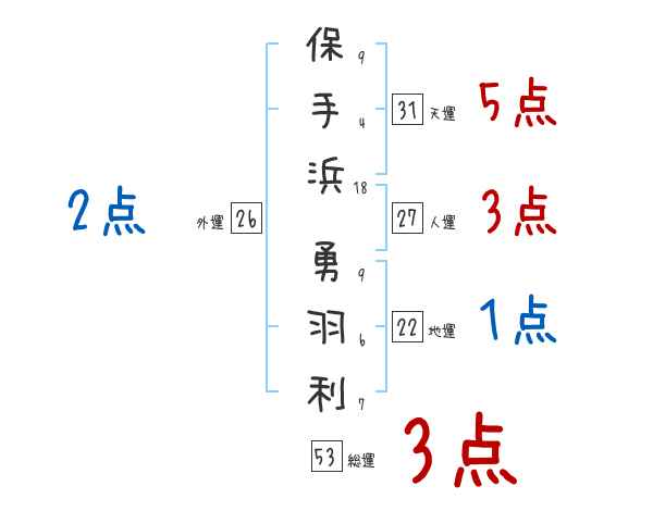 保手浜勇羽利さんの画数の鑑定結果