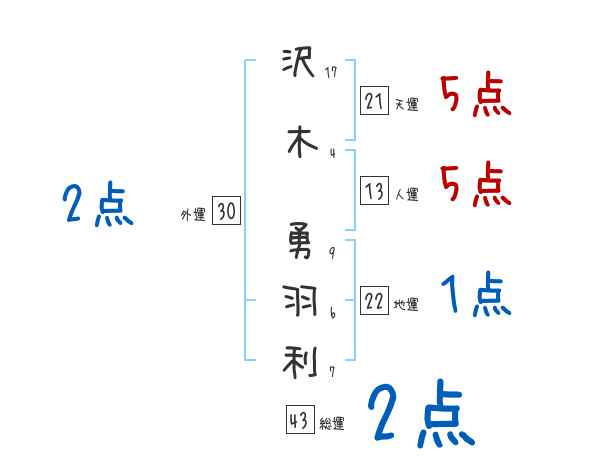 天運![]() | 沢木勇羽利さんの天運は21画の5つ星!統率力がある。独立し成功する。名誉を手に入れる。 家系が持つ宿命的な運勢を表します。祖先から受け継いだ苗字ですので自分の力が及びません。家柄を象徴します。 |