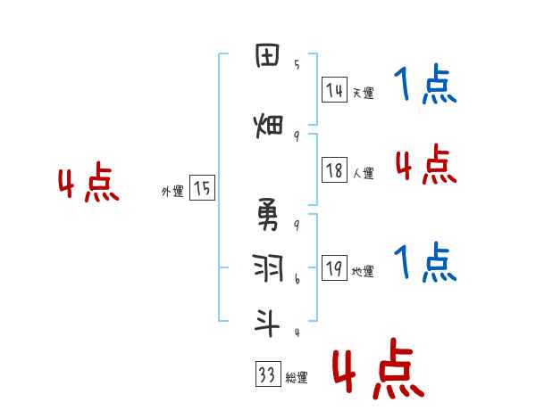 田畑勇羽斗さんの画数の鑑定結果