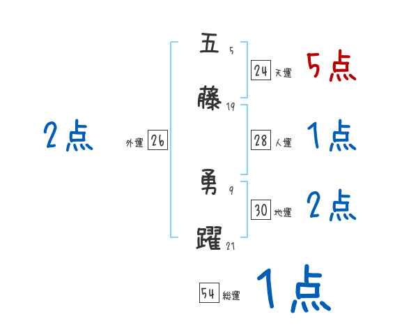 五藤勇躍さんの画数の鑑定結果