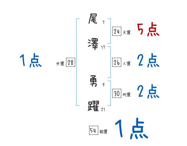 尾澤勇躍さんの画数の鑑定結果