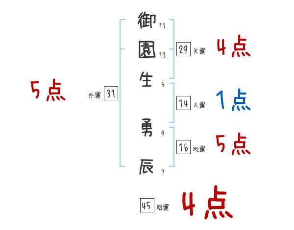 御園生勇辰さんの画数の鑑定結果