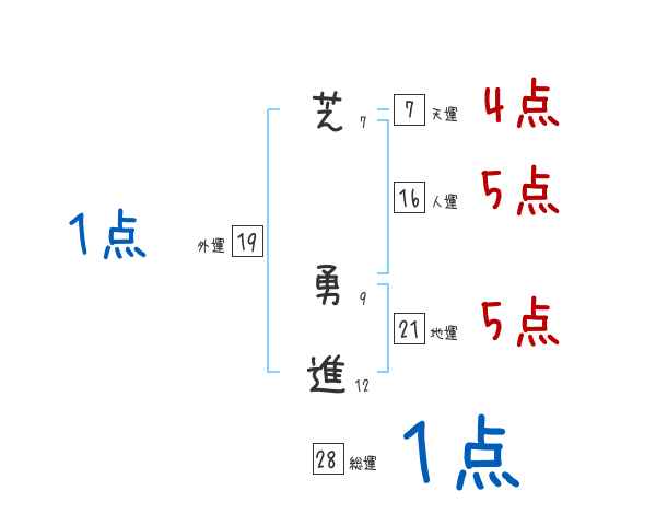 総運![]() | 芝勇進さんの総運は28画の1つ星!家庭環境に注意。スポーツで活躍できる能力があるかも。 あなたの人生を表す1番重要な運勢です。生涯を通じて影響する総合運となり、主に50歳以降の晩年期に影響を及ぼします。 |