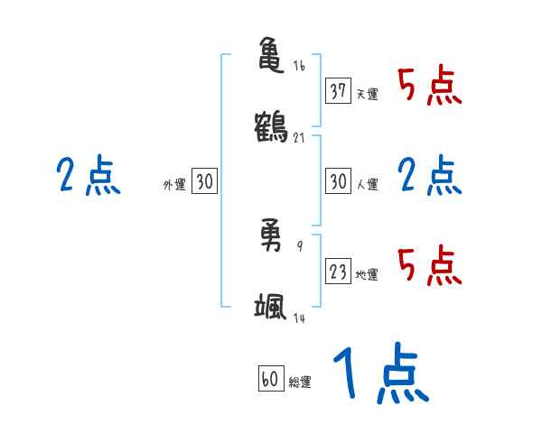 亀鶴勇颯さんの画数の鑑定結果