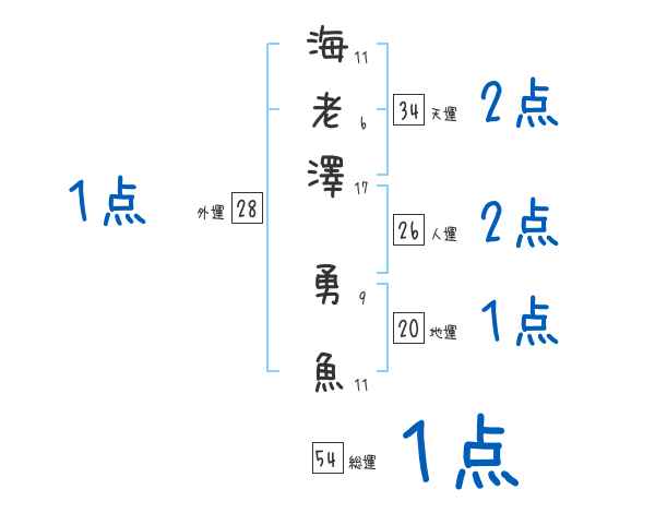 海老澤勇魚さんの画数の鑑定結果