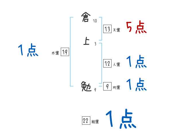 倉上勉さんの画数の鑑定結果