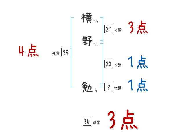 横野勉さんの画数の鑑定結果
