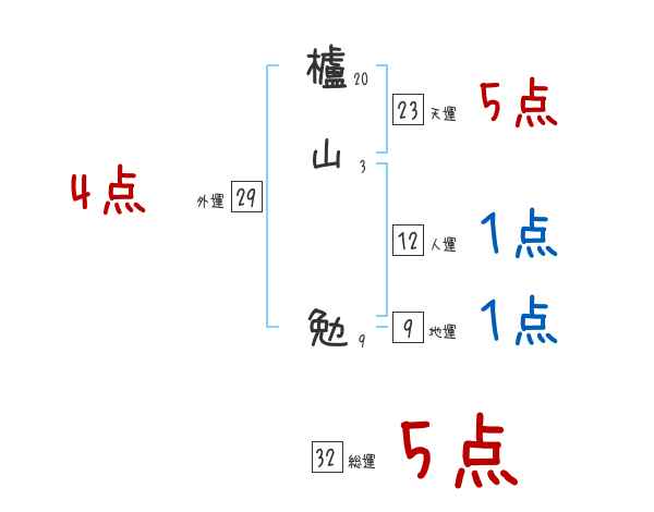 総運![]() | 櫨山勉さんの総運は32画の5つ星!柔軟性があり成功する。チャンスが多く金運が良い。 あなたの人生を表す1番重要な運勢です。生涯を通じて影響する総合運となり、主に50歳以降の晩年期に影響を及ぼします。 |