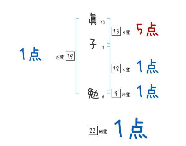 眞子勉さんの画数の鑑定結果