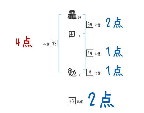 靏田勉さんの画数の鑑定結果
