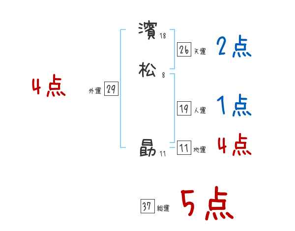濱松勗さんの画数の鑑定結果