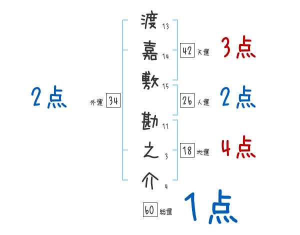 天運![]() | 渡嘉敷勘之介さんの天運は42画の3つ星!病気に注意。多芸であるが消極的でおとなしい。 家系が持つ宿命的な運勢を表します。祖先から受け継いだ苗字ですので自分の力が及びません。家柄を象徴します。 |