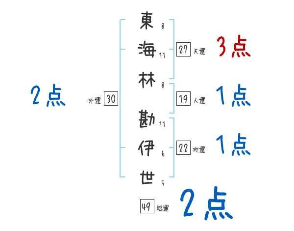 東海林勘伊世さんの画数の鑑定結果