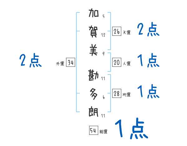 加賀美勘多朗さんの画数の鑑定結果