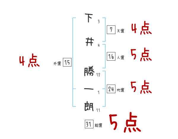 下井勝一朗さんの画数の鑑定結果