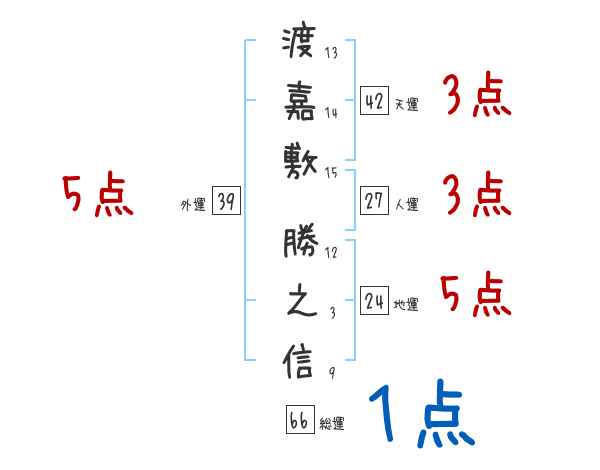渡嘉敷勝之信さんの画数の鑑定結果