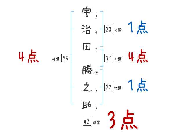 宇治田勝之助さんの画数の鑑定結果