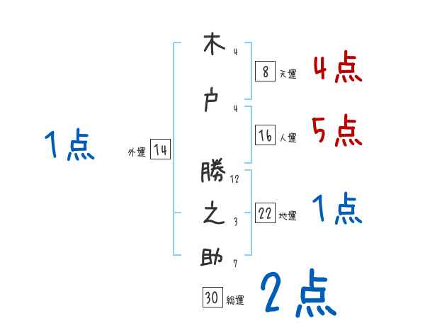 人運![]() | 木戸勝之助さんの人運は16画の5つ星!人望が厚く大きく発展する。逆転成功が見える。 性格や才能などを表す2番目に重要な運勢です。人間関係や協調性、社会的な成功に影響します。主に20歳から50歳ぐらいまでの中年期の運勢を表します。 |