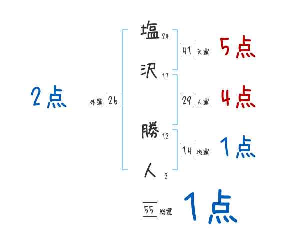 塩沢勝人さんの画数の鑑定結果