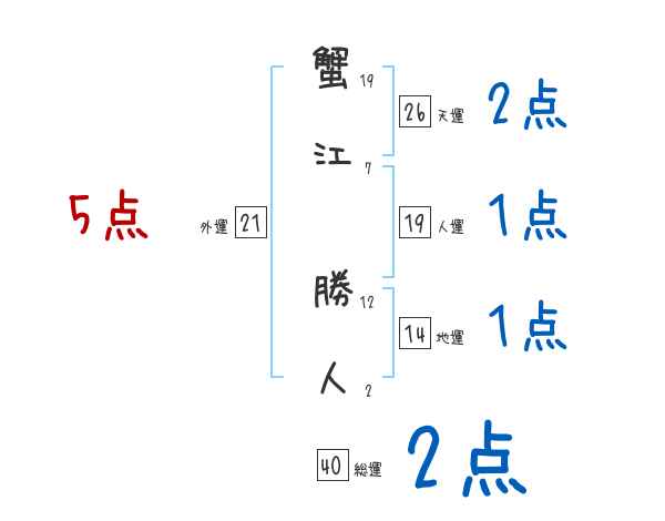 蟹江勝人さんの画数の鑑定結果