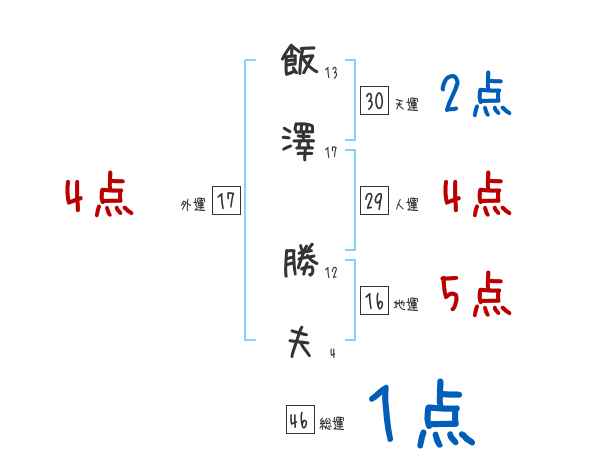 飯澤勝夫さんの画数の鑑定結果