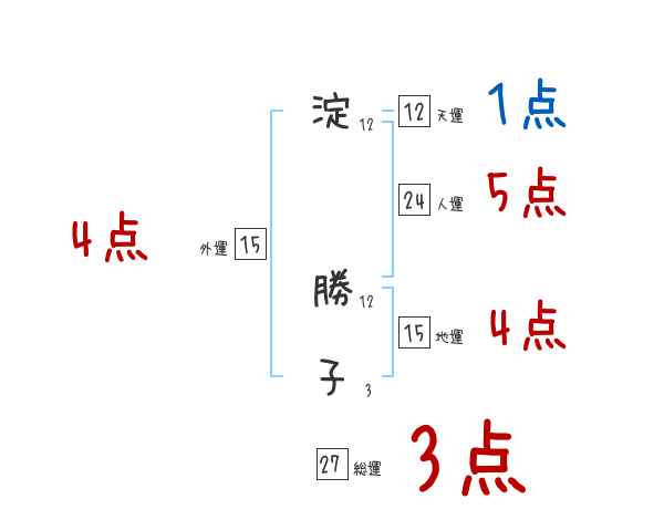 淀勝子さんの画数の鑑定結果