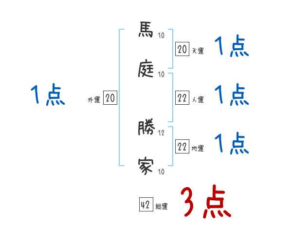 馬庭勝家さんの画数の鑑定結果