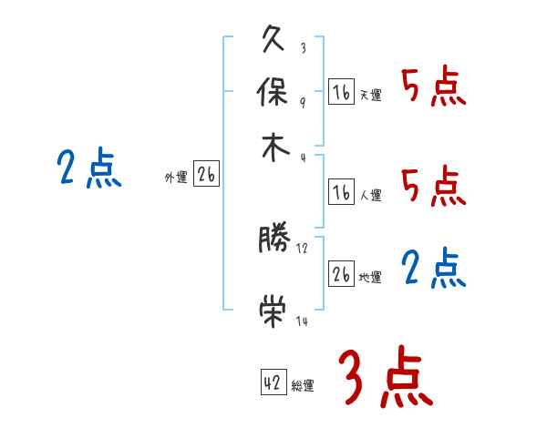 外運![]() | 久保木勝栄さんの外運は26画の2つ星!波瀾万丈かも。信頼できる人を大事にしましょう。 生活面を象徴する運勢です。外部から受ける影響力を表し、結婚運、家庭運や職場、環境への順応性を表します。 |