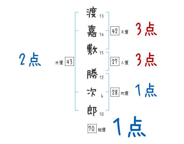 渡嘉敷勝次郎さんの画数の鑑定結果