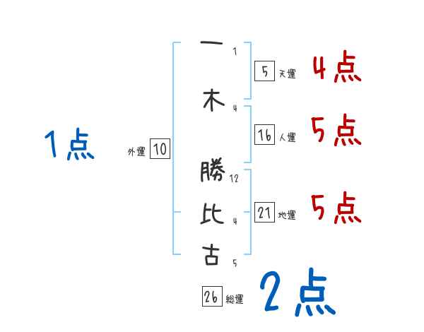 人運![]() | 一木勝比古さんの人運は16画の5つ星!人望が厚く大きく発展する。逆転成功が見える。 性格や才能などを表す2番目に重要な運勢です。人間関係や協調性、社会的な成功に影響します。主に20歳から50歳ぐらいまでの中年期の運勢を表します。 |