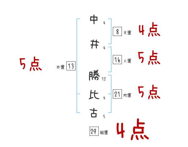 天運![]() | 中井勝比古さんの天運は8画の4つ星!勤勉家。根気強く努力し成功する。忍耐力がある。 家系が持つ宿命的な運勢を表します。祖先から受け継いだ苗字ですので自分の力が及びません。家柄を象徴します。 |