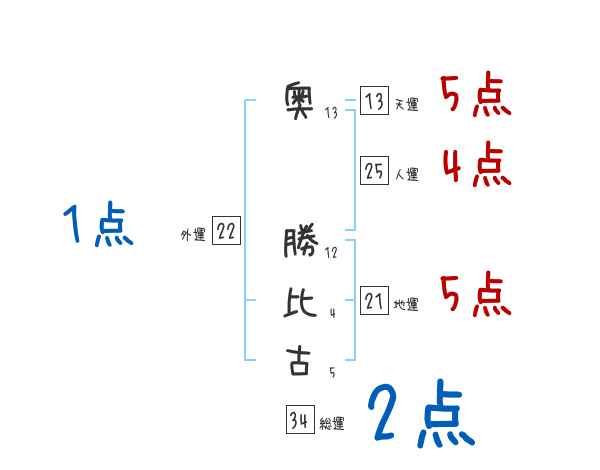 奥勝比古さんの画数の鑑定結果