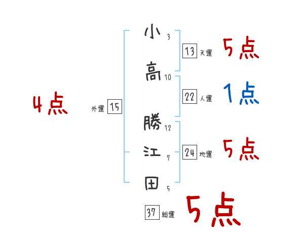 小高勝江田さんの画数の鑑定結果