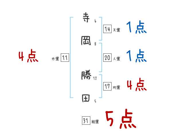 寺岡勝田さんの総運は31画の5つ星