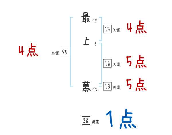 最上募さんの総運は28画の1つ星