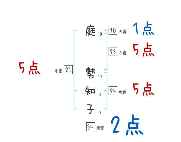 外運![]() | 庭勢知子さんの外運は21画の5つ星!統率力がある。独立し成功する。名誉を手に入れる。 生活面を象徴する運勢です。外部から受ける影響力を表し、結婚運、家庭運や職場、環境への順応性を表します。 |