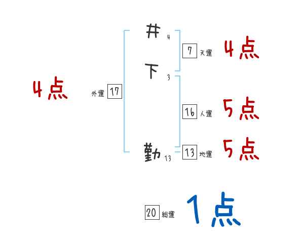 井下勤さんの画数の鑑定結果