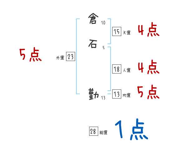 倉石勤さんの画数の鑑定結果