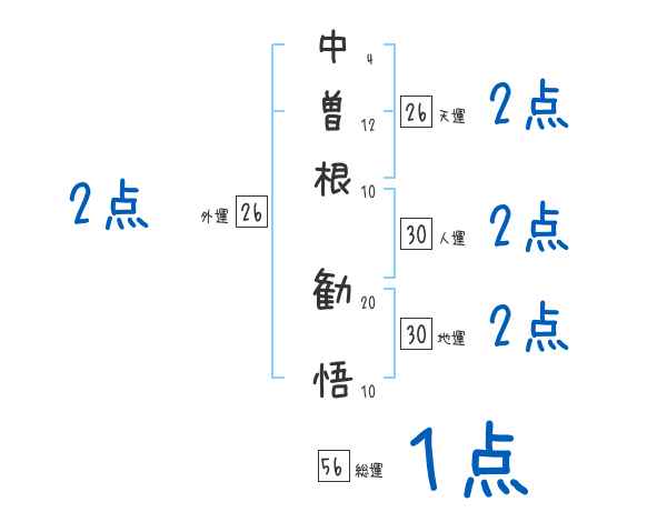 中曽根勧悟さんの画数の鑑定結果
