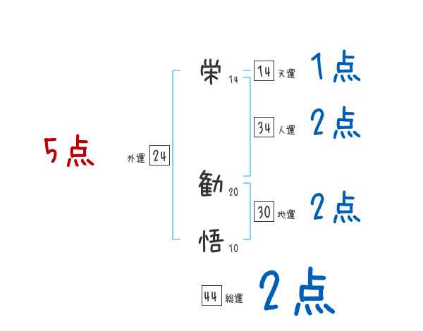 栄勧悟さんの画数の鑑定結果