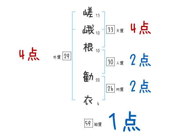天運![]() | 嵯峨根勧衣さんの天運は33画の4つ星!権力志向でプライドが高い。勇気があり運を切り開き成功する。 家系が持つ宿命的な運勢を表します。祖先から受け継いだ苗字ですので自分の力が及びません。家柄を象徴します。 |