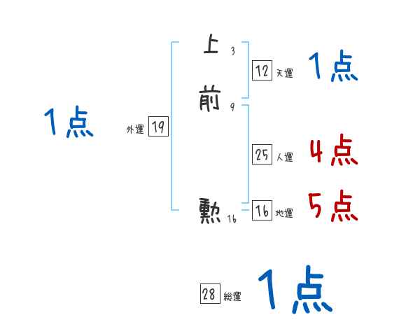上前勲さんの画数の鑑定結果