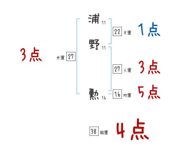 浦野勲さんの画数の鑑定結果