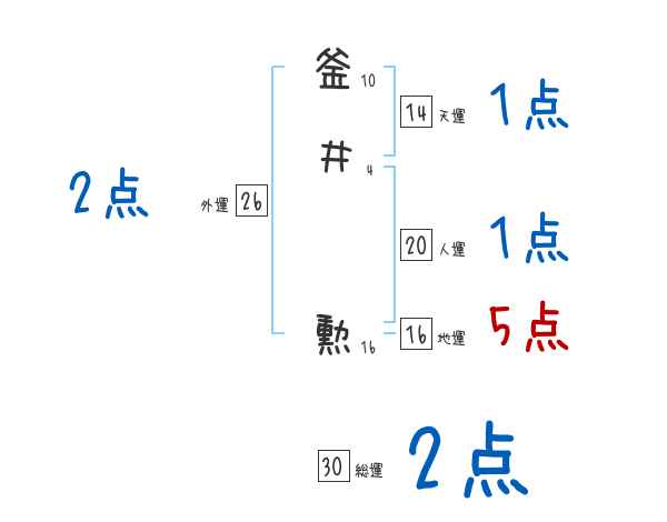 釜井勲さんの画数の鑑定結果