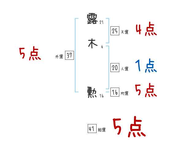 天運![]() | 露木勲さんの天運は25画の4つ星!個性があり才能があふれる。強運の持ち主で発展する。 家系が持つ宿命的な運勢を表します。祖先から受け継いだ苗字ですので自分の力が及びません。家柄を象徴します。 |