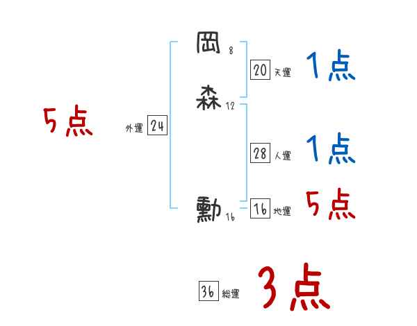 岡森勳さんの画数の鑑定結果