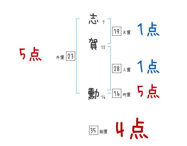 志賀勳さんの画数の鑑定結果