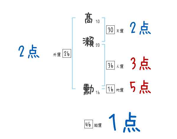 髙瀨勳さんの画数の鑑定結果