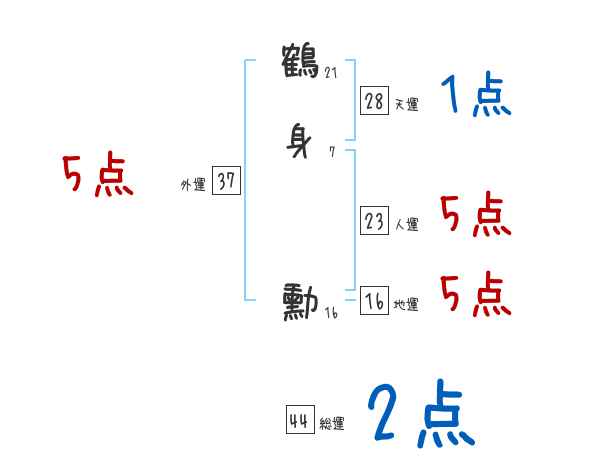 鶴身勳さんの画数の鑑定結果
